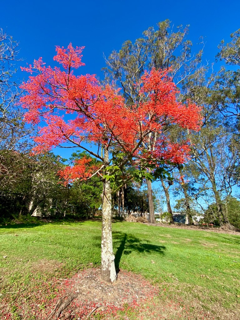 Driving down a suburban street in Brisbane I am mesmerised by a tree I see to my right. I turn around, find a layby I can stop in and get down to photograph it. Yes the reds are upon us –