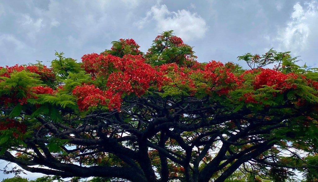 These flame trees are truly exceptional. They are head to toe red and glow in the sunlight.