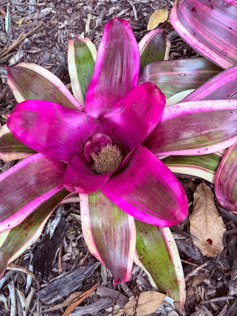 Normally I get dropped off at the radio on a Monday morning but C is away on a work trip. I could have driven in but I decided to walk and what a good idea it was. I walked through the Parklands. Soft rain was falling. I took my hat off and felt it on my face and arms. A gentle breeze. And then the Parklands offer me these amazing bromeliads with colours that truly need to be seen to be believed. Activity, nature and colour all coming together to give me the best start to this day and year.