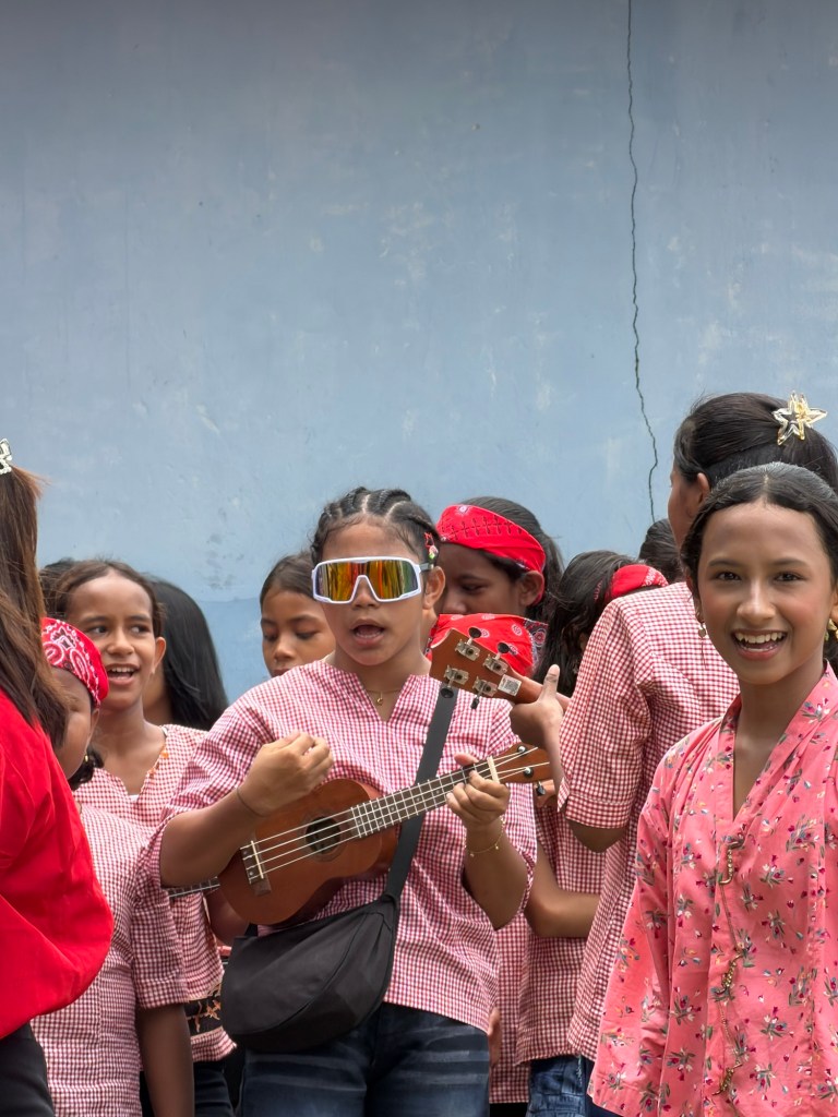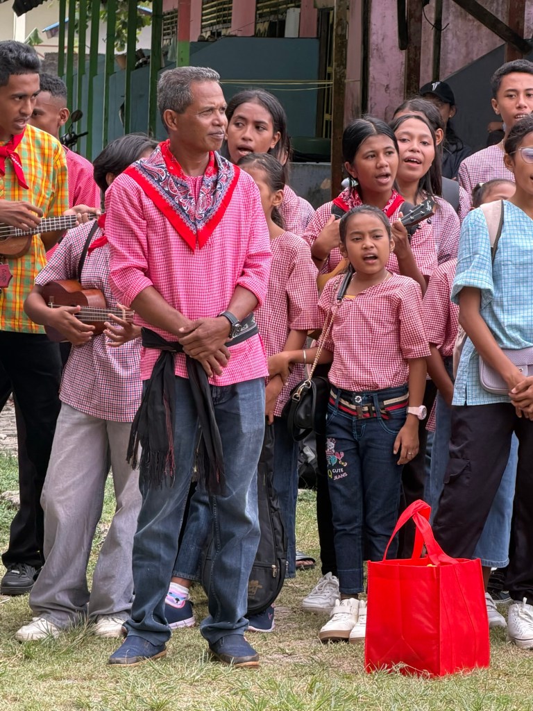 We arrived to a traditional welcome dance by the women signifying peace and love to the music of the ukuleles played by the local school children.