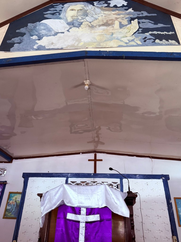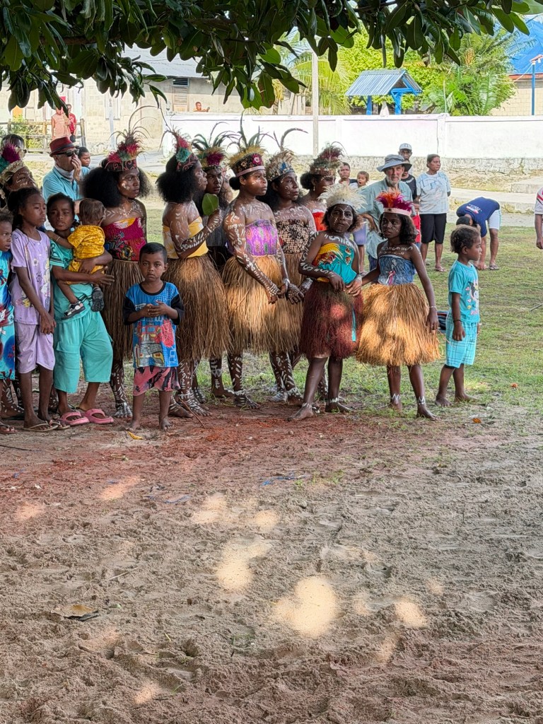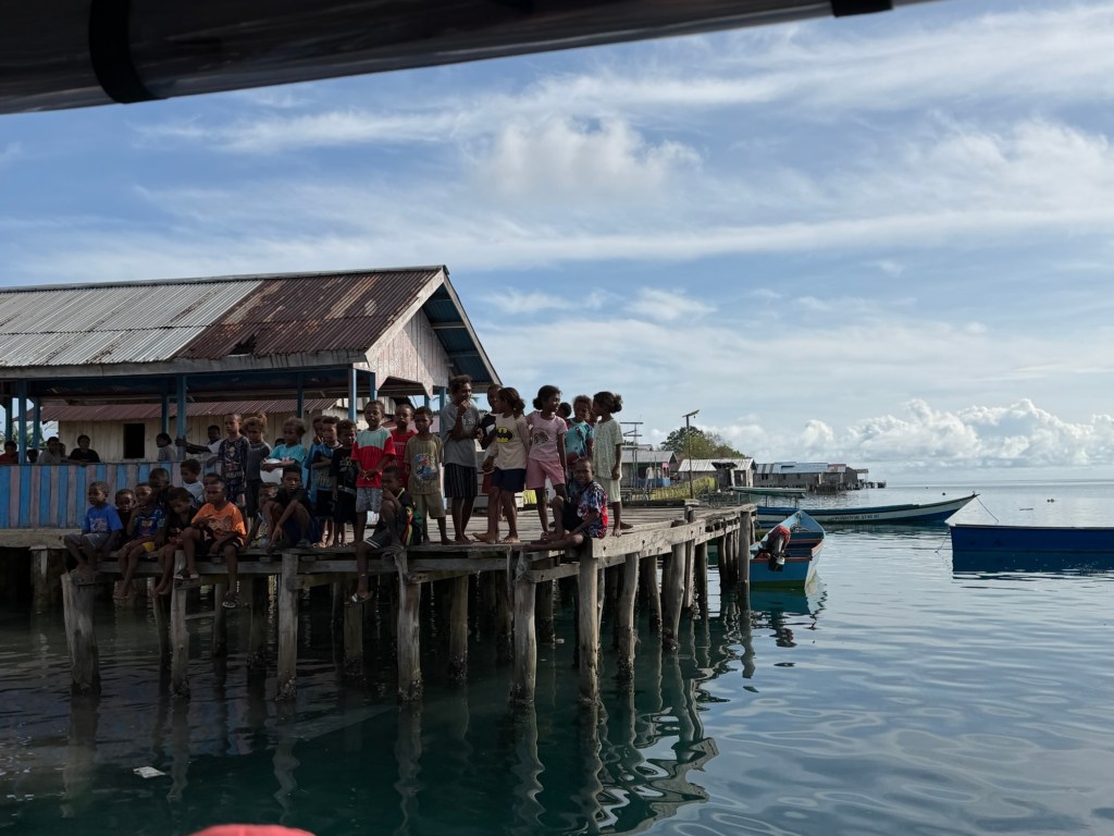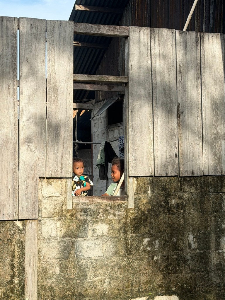 They accompanied us all the way. Small wooden houses built on stilts along the coastline. People going about their daily business. A Christian Protestant community with churches in each of the villages. A focal point for daily prayer and gatherings.